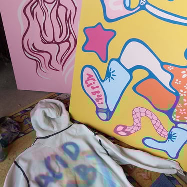 Acid Baby's art is an explosion of colour, movement, and energy, blending abstract forms with bold, playful hues. The work is deeply influenced by mental illness awareness, using vibrant, fluid imagery to explore the complexities of the mind—its highs, lows, and everything in between. Through surreal and psychedelic elements, Acid Baby aims to challenge stigmas, evoke emotion, and create a space where viewers can find both chaos and comfort. Each piece is a visual trip—an invitation to embrace vulnerability, beauty, and the unexpected.